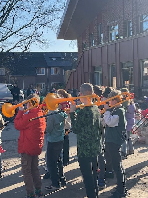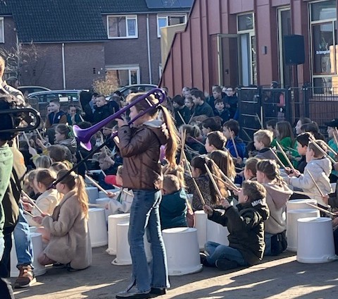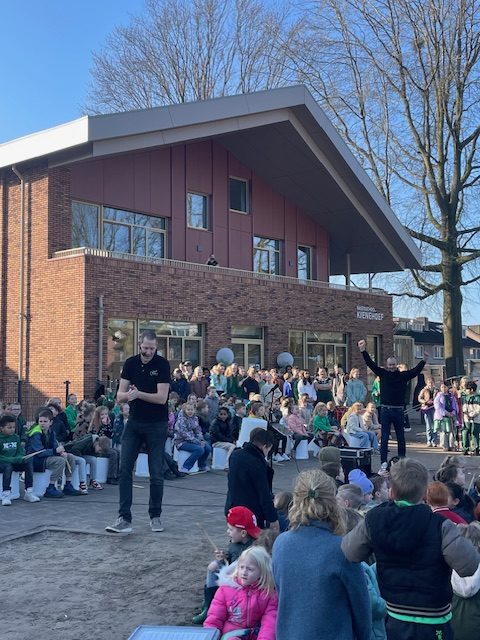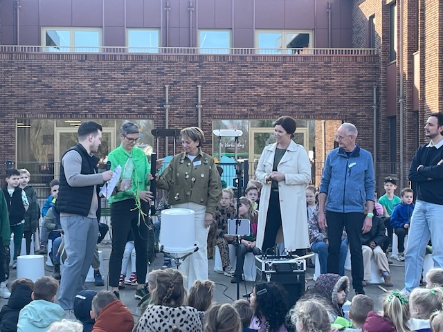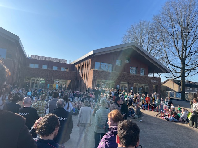 Op deze prachtige zonovergoten vrijdagochtend, werd op hele muzikale en feestelijke manier, mét behulp van ALLE leerlingen MFA(multi functionele accommodatie) De Groene Long geopend!